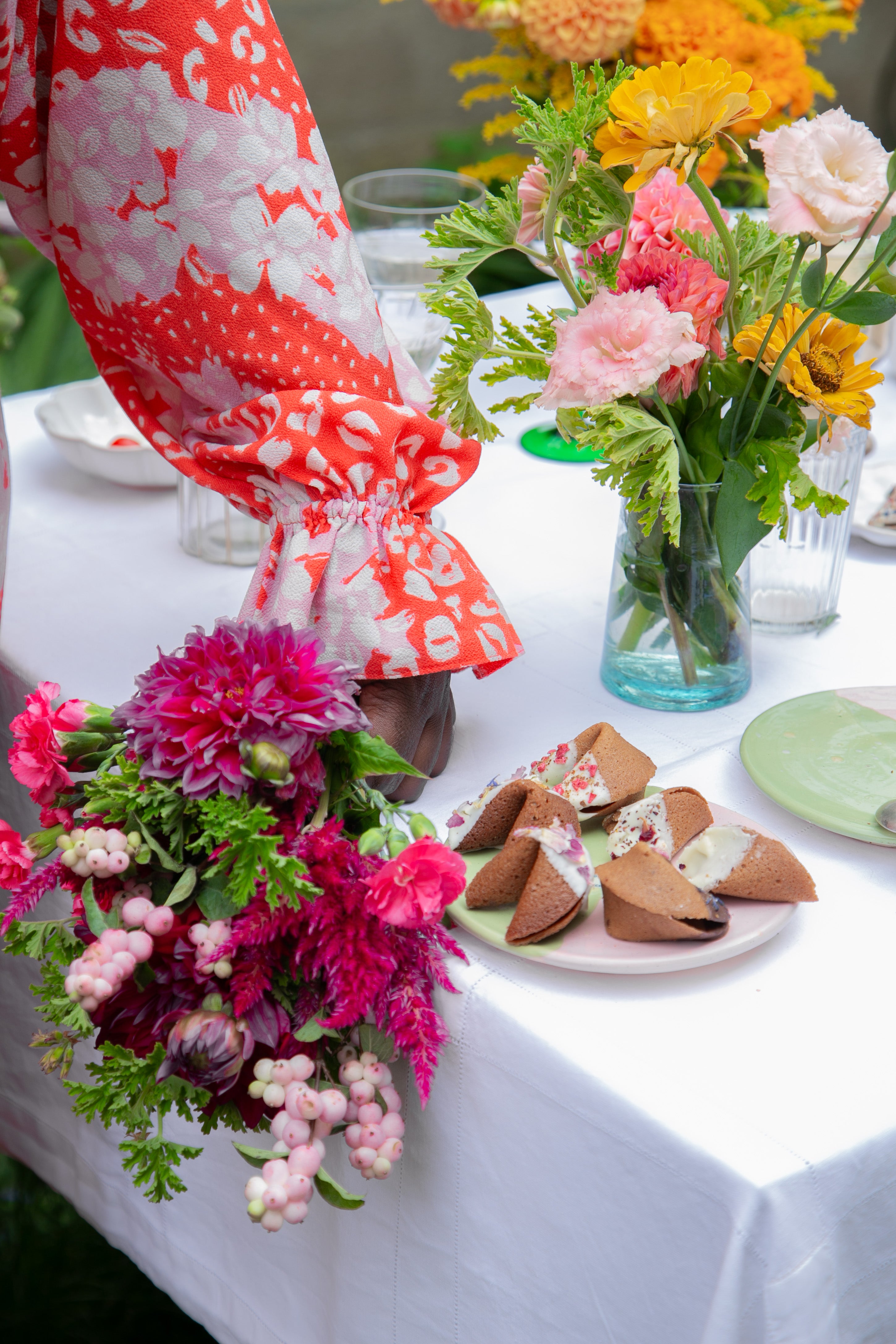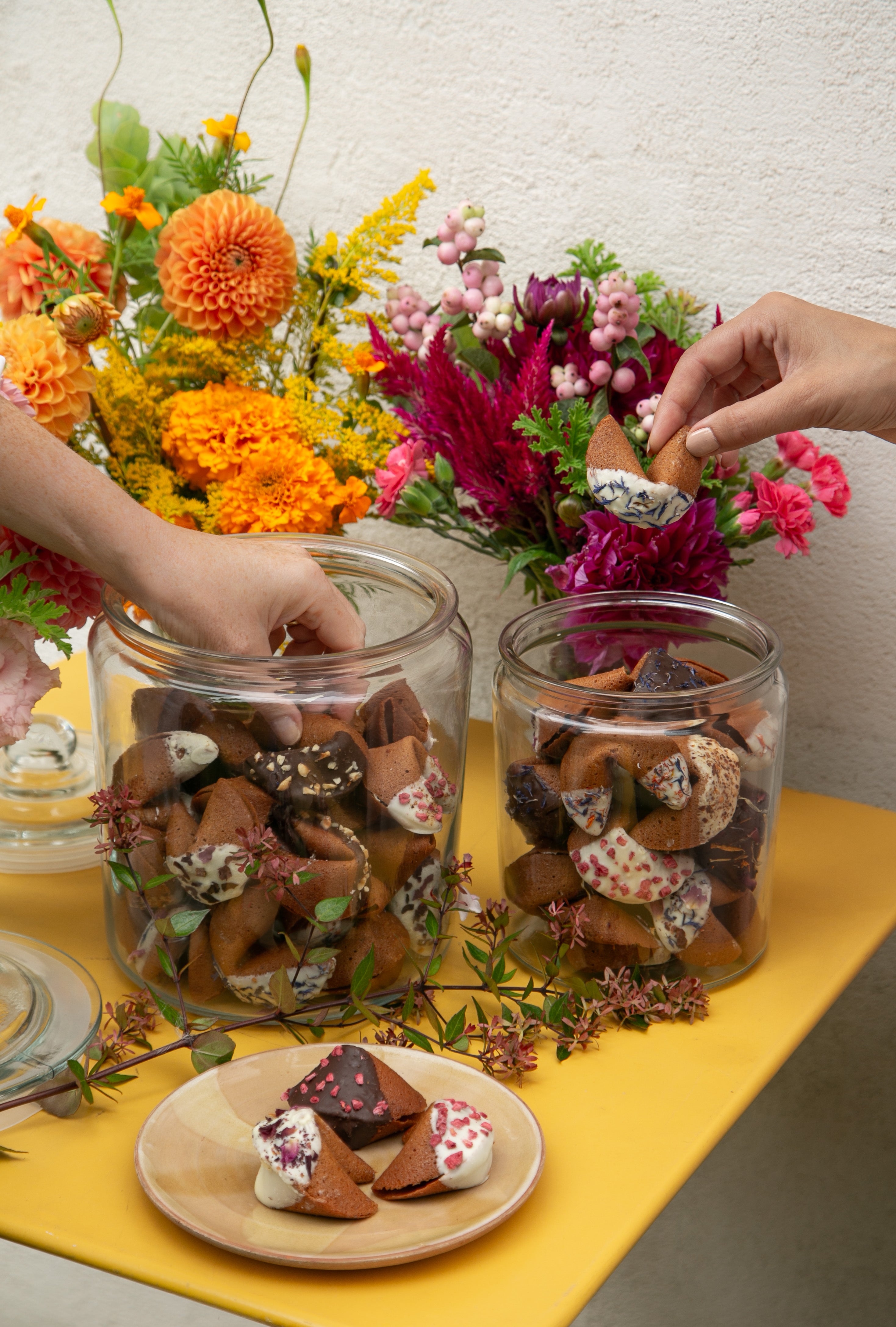 - Mix de fleurs (rose, bleu, jaune)
